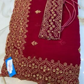 Soie Plissée Couleur Rouge Dorée