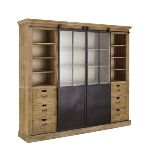 Bibliothèque Germain 2 portes en manguier massif / PAR COMMANDE