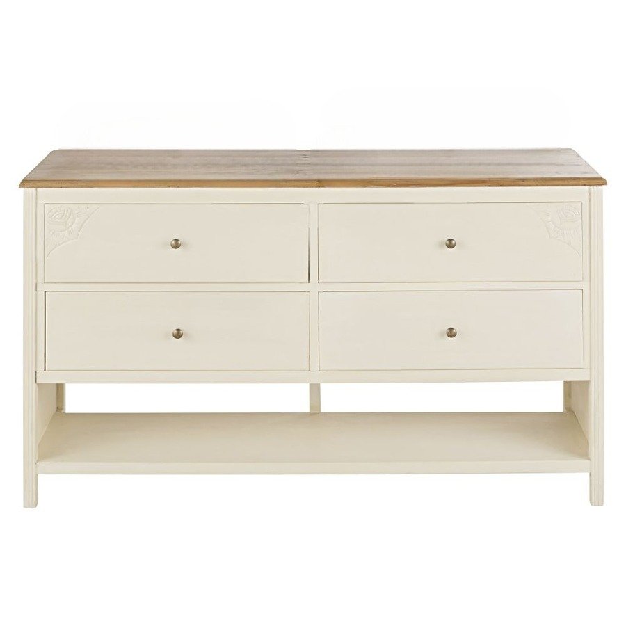 Commode 4 tiroirs, blanc cassé avec poignées laiton / PAR COMMANDE