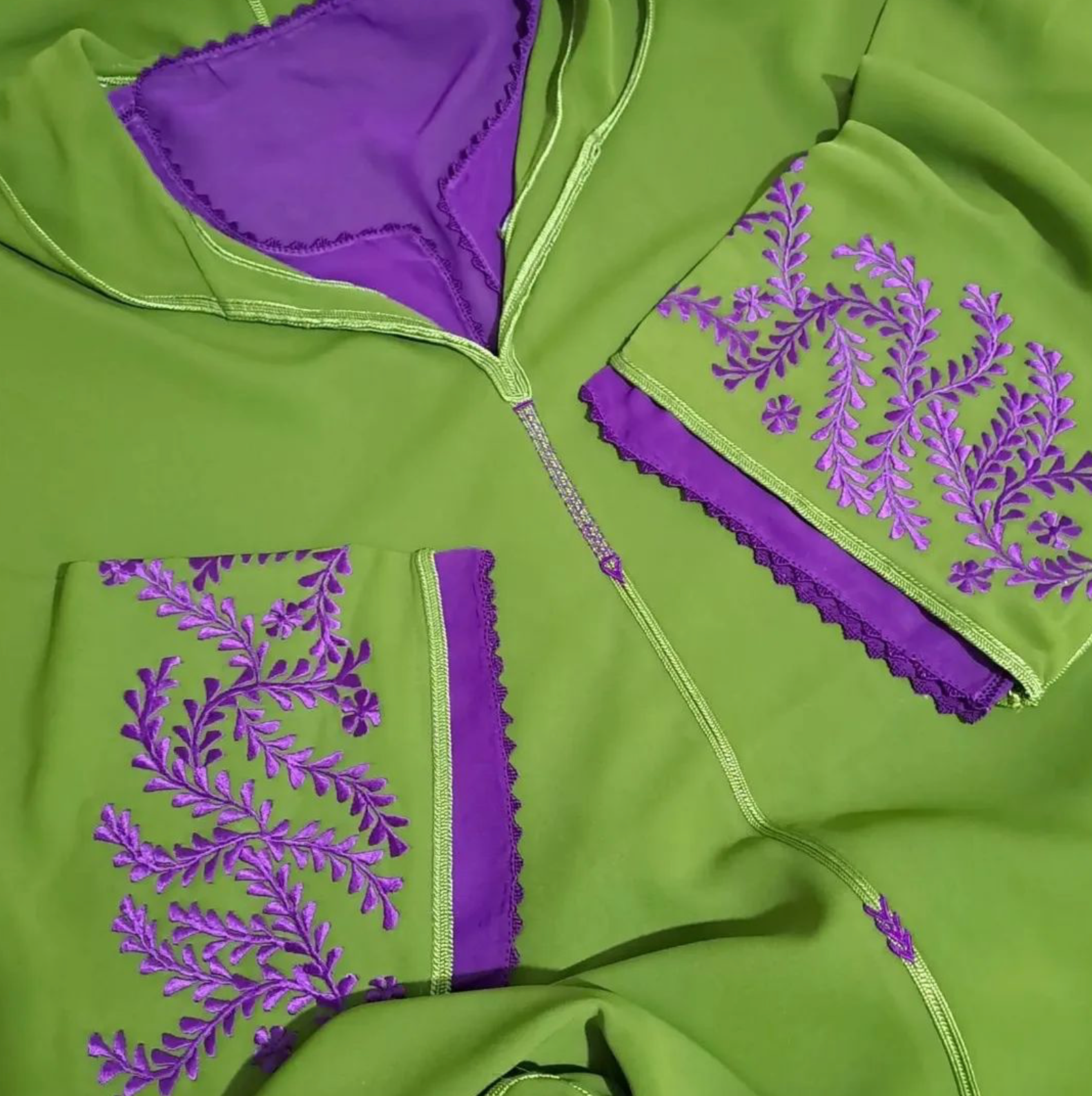 quantité de Jalabé Dubaï avec Bonnet couleur vert meuve