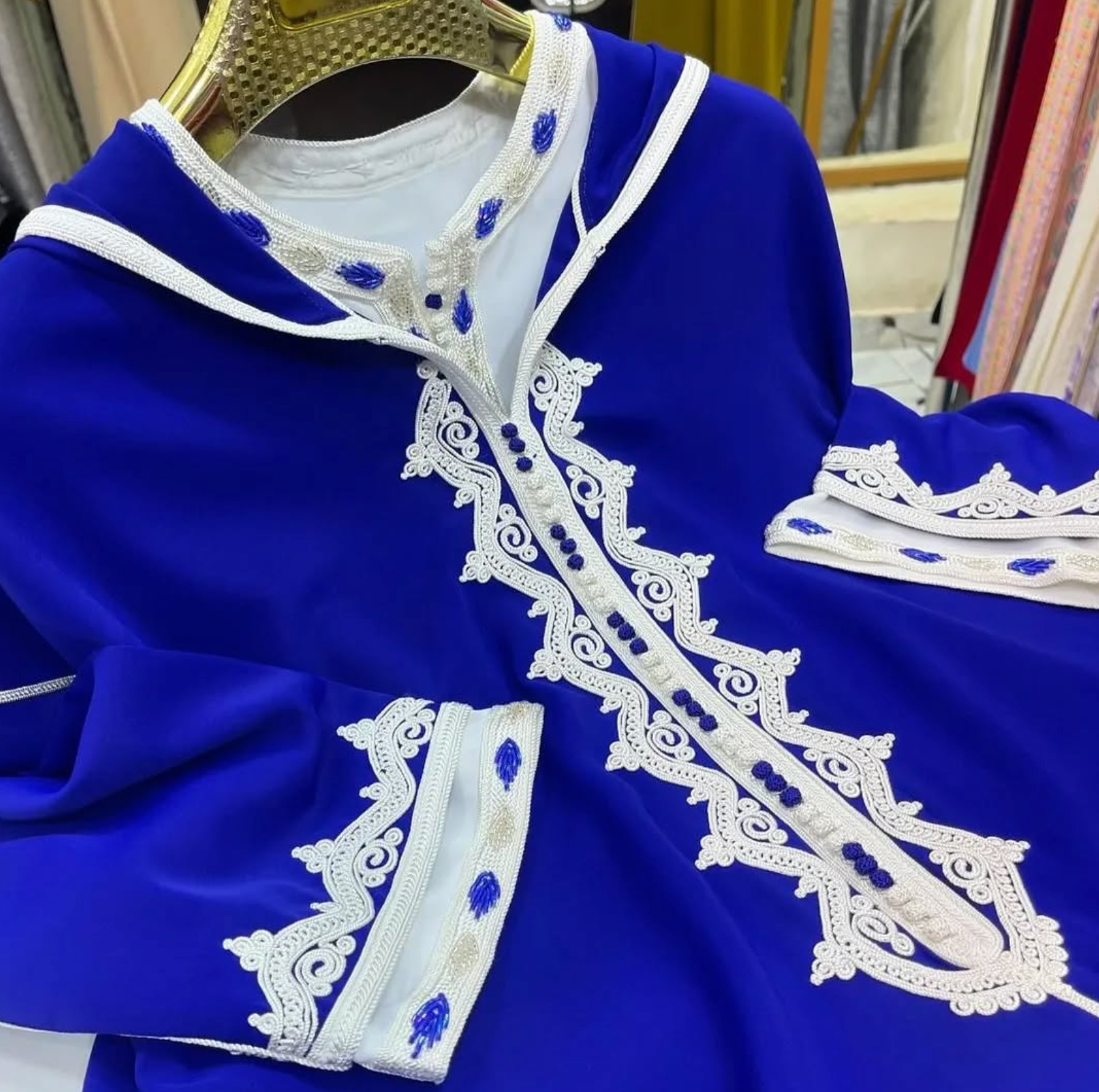 quantité de Jalabé Dubaï Bleu-Blanc avec Bonnet