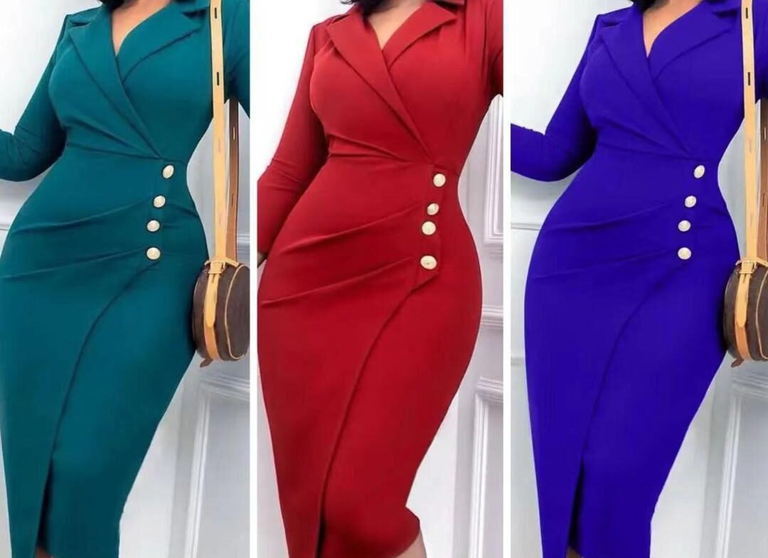 quantité de Manches Longues Couleur Unie col Tailleur carrière Moulant Robe Portefeuille Hanche Robe Mini