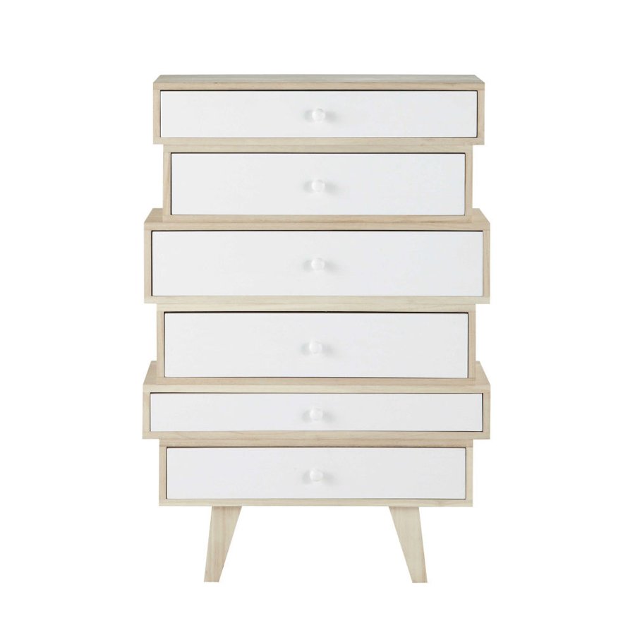 Semainier Spring style scandinave, 6 tiroirs en bois blanc / PAR COMMANDE