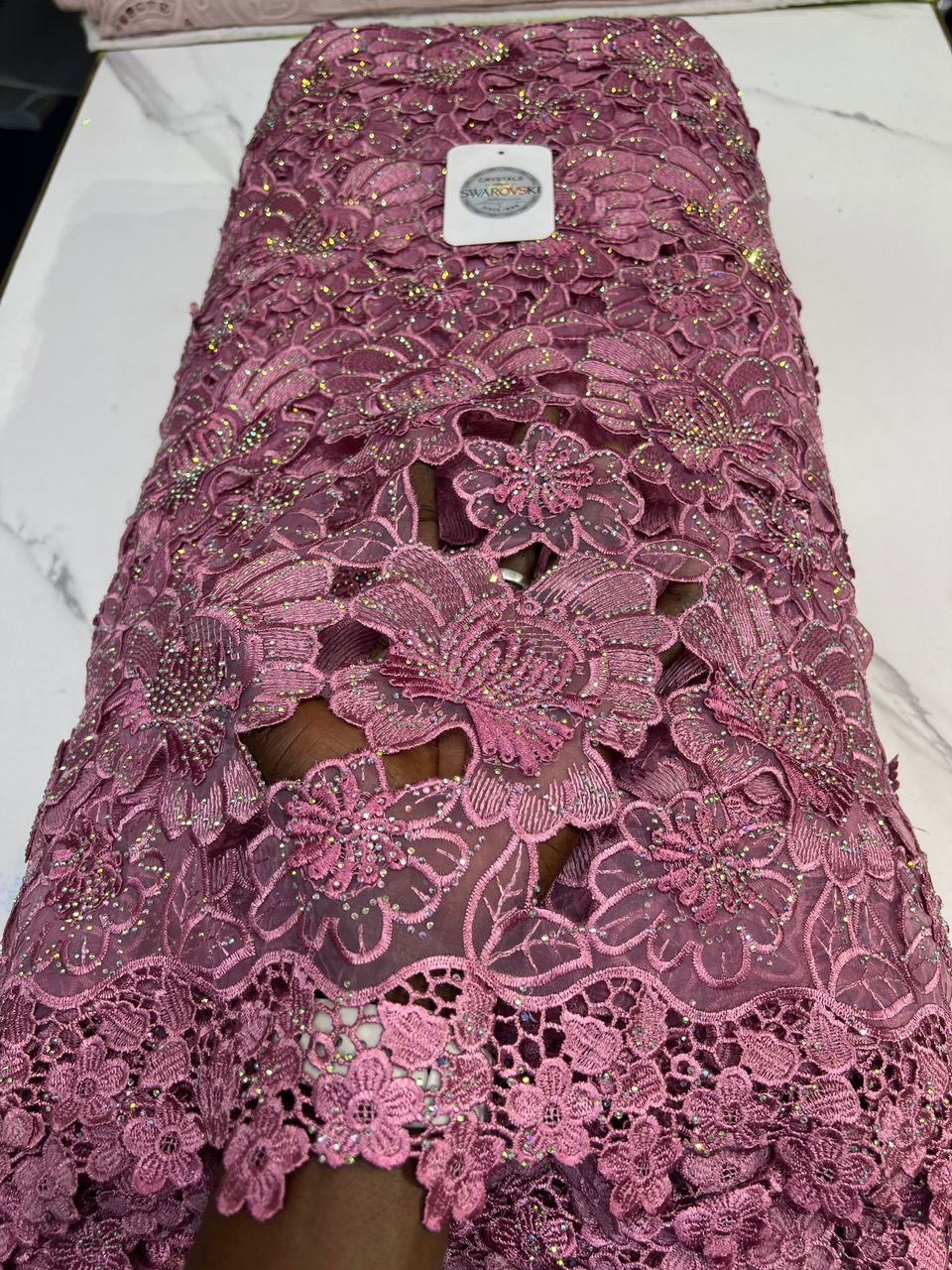 Tissu Guipure Organza Meuve / Yard = 15000 F