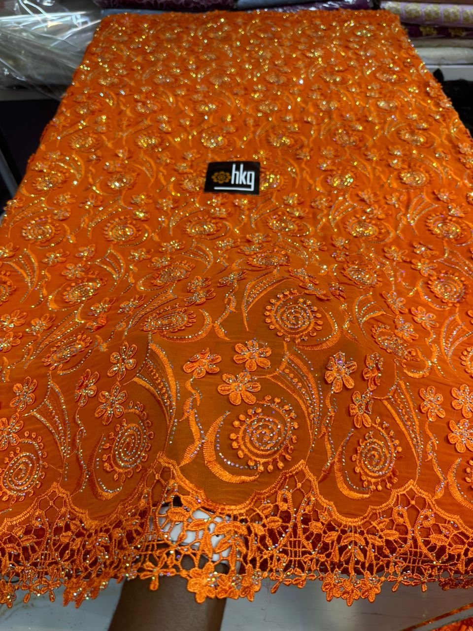 Tissu Guipure Organza Orange Foncé / Yard = 15000 F