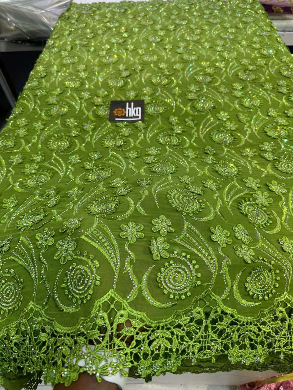 Tissu Guipure Organza Vert / Yard = 15000 F